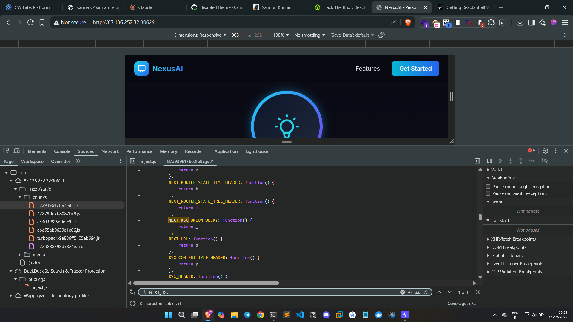 I opened DevTools and navigated to the Sources tab to inspect the /_next/static/ bundles. While examining the JavaScript chunks, I discovered a significant indicator: